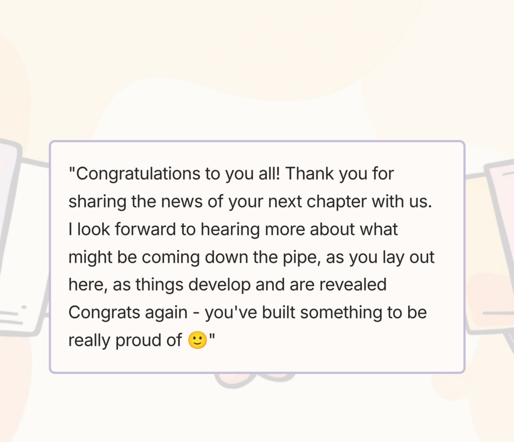 The answers surprised and moved me. Every single response we received was positive, supportive, and excited for what comes next together. It says a lot about the relationships our teams have built over the years.