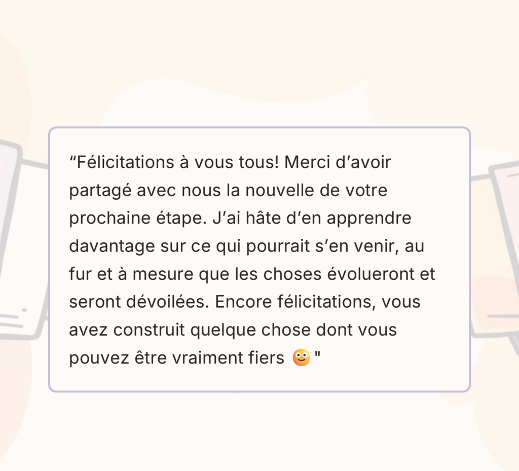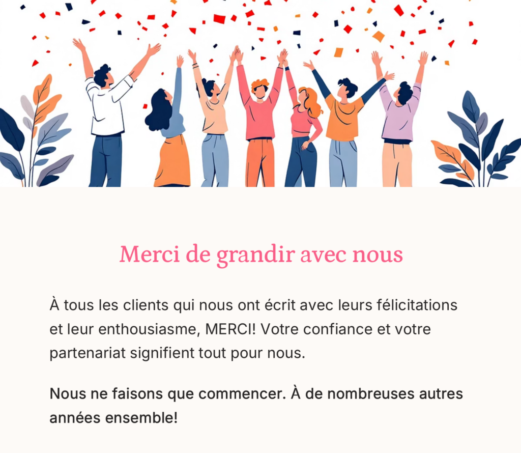 À nos clients et partenaires, merci. Merci pour votre confiance, votre soutien et vos commentaires sincères pendant la transition. On prend cette confiance très au sérieux, et notre objectif est simple : continuer à la mériter, jour après jour, avec le même niveau de soin et de qualité que vous attendez de nous.